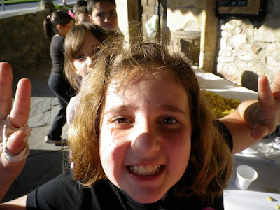 Asturias ayer nos regaló un cielo azul y un día soleado, que los niños y los catequistas disfrutamos al máximo; si tener un día así, en medio de una semana de lluvias, no es un milagro y una bendición, díganme ustedes, entonces, lo que es. Los niños jugaron y disfrutaron con los juegos de toda la vida que, para la ocasión, les preparó Primitivo; jugaron a la carrera de sacos, al pañuelo, saltarón, corrieron, brincaron...yo los veía y me divertía como podía desde lejos, pues con mi movilidad limitada, era poco lo que podía yo hacer; me dedique a la música y de vez en cuando me levantaba y con esfuerzo caminaba para poder, a través del objetivo, quedarme con pequeños momentos que me permitirán recordar una y otra vez la tarde de ayer; de vez en cuando se me olvidaba que no podía estar haciendo desarreglos y me ponía a bailar, pero mi amiga la ciática me decía: hey!!! aquí estoy y con un pinchazo me volvía a sentar; me divertí como pude y como ella me dejo. Debo protestar y decir, que así no se puede, con lo que yo goce el año pasado corriendo y saltando con mis chicos y este año, verlo desde lejos, no, no, así como que no es justo, pero como nadie tiene la culpa, solo queda disfrutar como te dejan las circunstancias. Debo decir también que el desarreglo me pasó factura al final del día, pero eso no importa, como decía mi güela, una vieja muy sabia, "un gustazo, un trancazo", así que yo con mi dolor en la noche: agua y ajo...