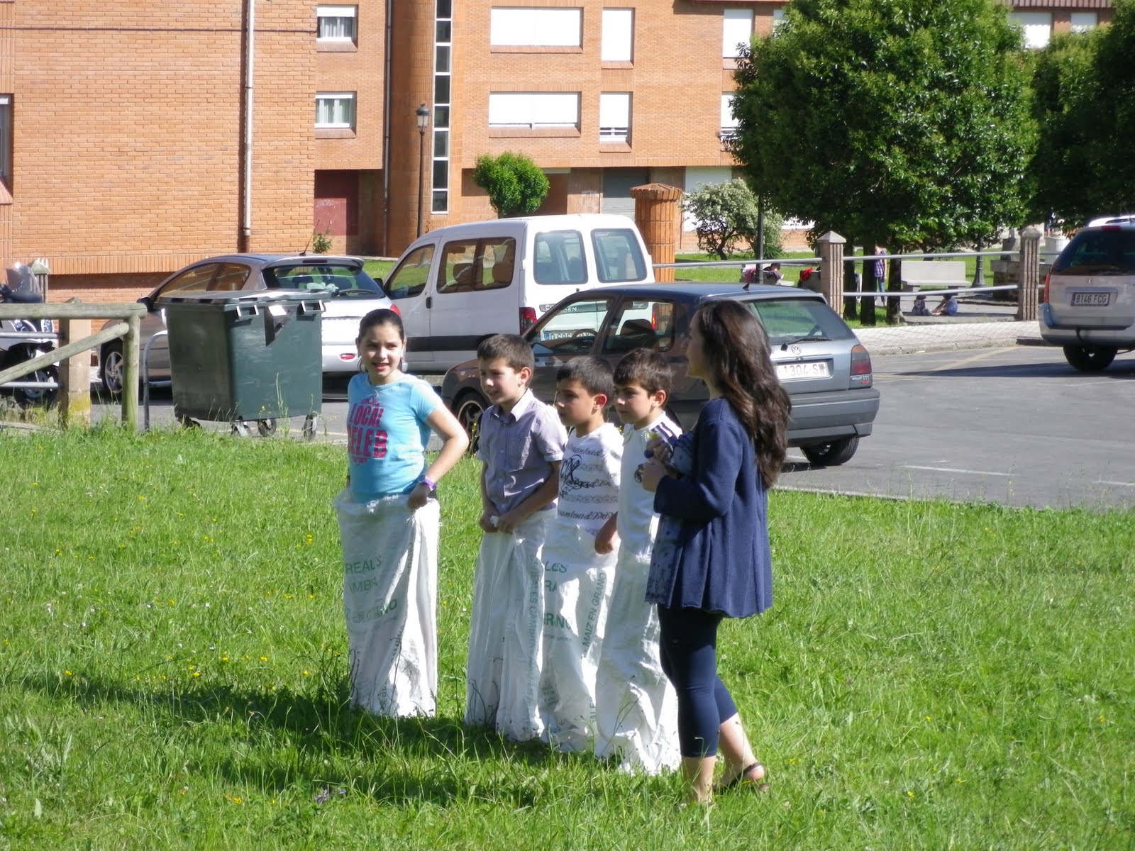 Manti, catequista y sus pequeñas nietas... Carrera de sacos... El pañuelo...
