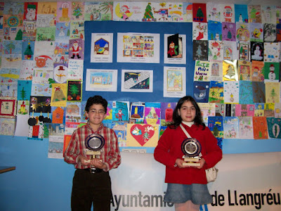 Ayer, sábado, fue la entrega de premios a los niños que ganaron en el concurso de tarjetas de navidad, de los colegios del Nalón. Este año, íbamos por partida doble, porque el José ganó, por segundo año consecutivo, el primer lugar de su categoría, y Maru, ganó el segundo lugar de su categoría. Le entregaron un trofeo, un pergamino de participación, un regalo, y un revoltijo.