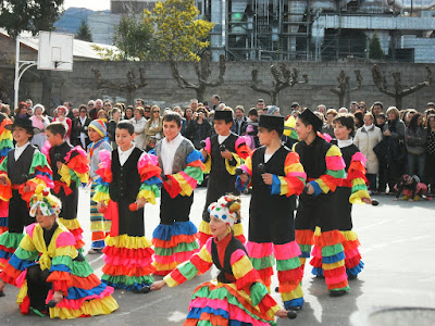 Los peques se divirtieron mucho, y aunque la Maru estaba muy nerviosa, pues le tocaba bailar flamenco, y ya sabemos cómo se las trae este baile, lo hizo muy bien; el José, estaba feliz bailando en la granja de mi tío y luego el tractor amarillo. Luego, como cada año, disfrutamos de un delicioso chocolate y de los típicos frixuelos.